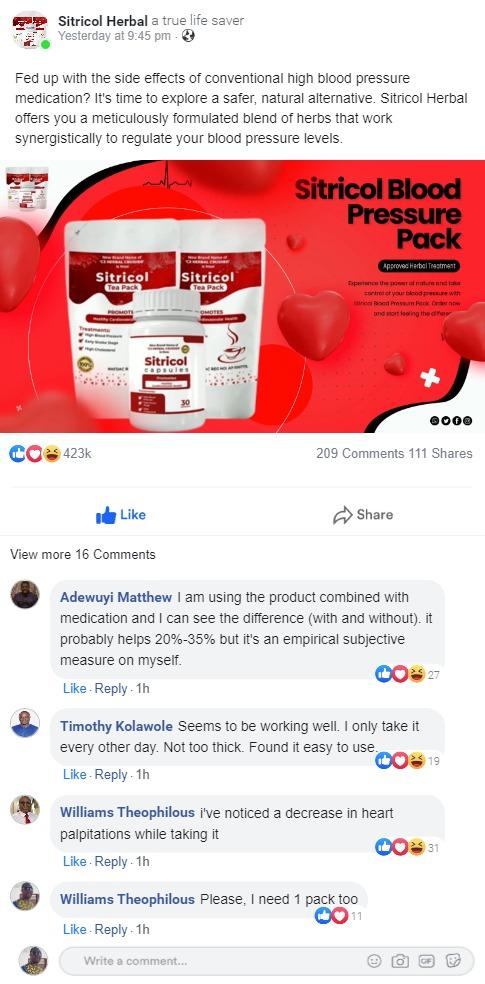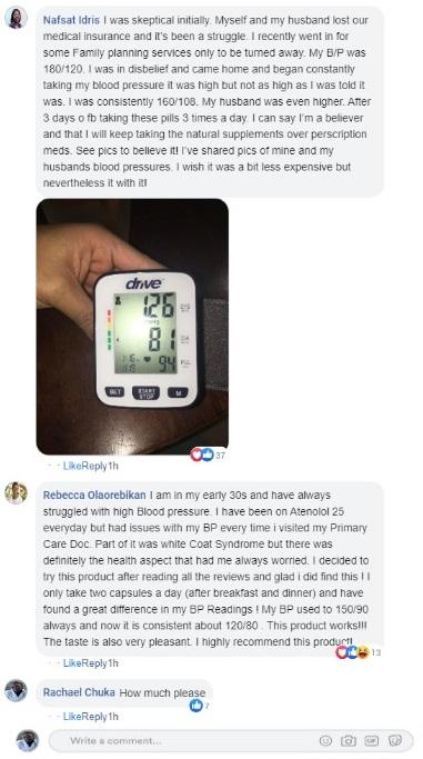 They say the partnered up with other tradomedical experts in Nigeria to make this ONE OF A KIND SUPER HERBAL SOLUTION that deliver this nutrient in adequate supply for the body.That way the body has the raw material it need to manufacture the MIRACLE MOLECULE which will help take care of blood pressure issues.