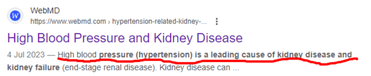 All medical authorities (including WebMD shown above) agree that high blood pressure (aka hypertension) is a ticking time bomb. The longer it stays in the body, the higher the risk of developing a case of irreparable kidney damage. A condition that not only costs a lot of money to maintain but often leads to unbearable suffering and death.